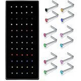 60pcs Nose Studs Zirconia Gem L Steel Ring Bar Body Piercing Jewellery Pin Bulk